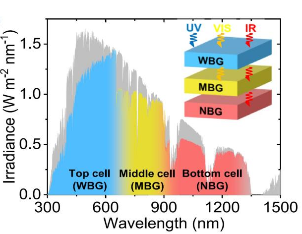 1.Top Layer (Wide Bandgap): Purpose-built to harvest high-energy Ultraviolet and Blue light.